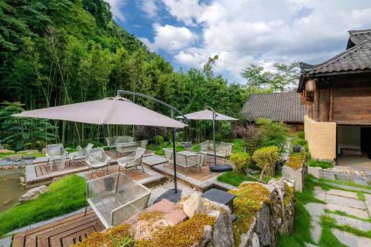五星好评,周围环境很不错,有山有水,空气清爽,晚上睡觉安静。装修也很有意境,古色古香很有特点。设施服务都很齐全,老板很好很热情,讲了很多景点注意事项,住的很满意!