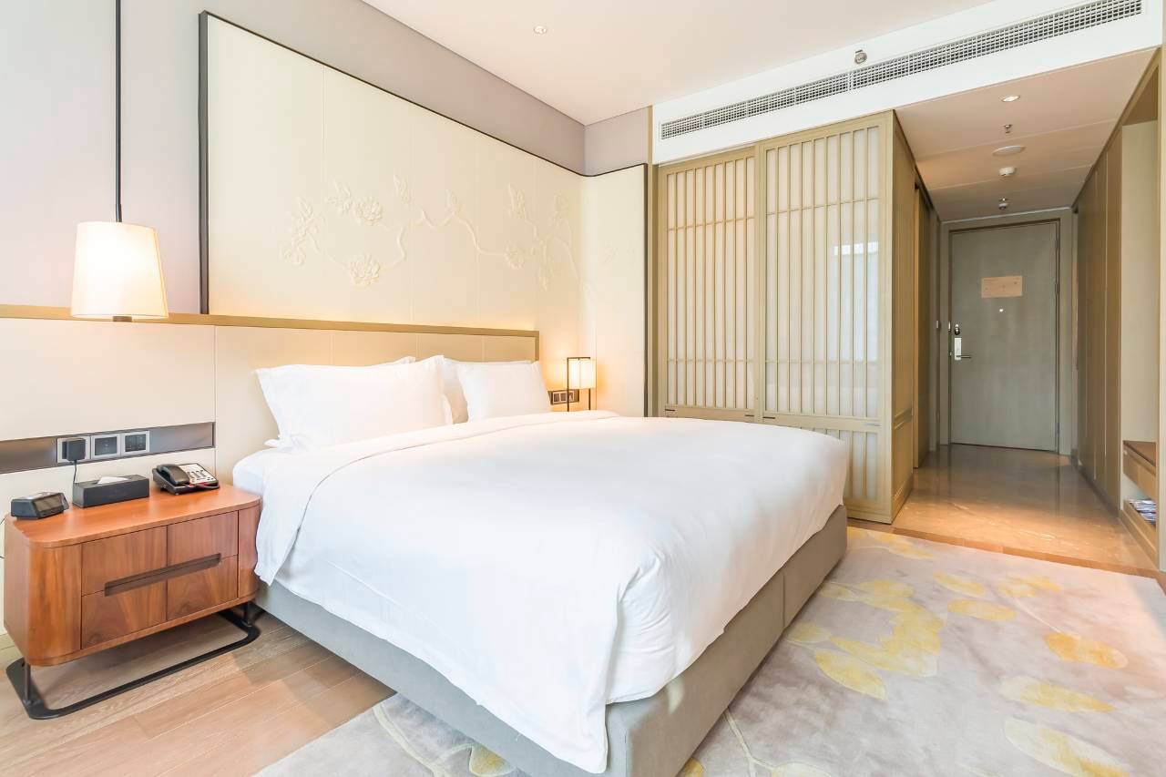 房间设计现代,床品舒适度高,确保了优质的睡眠。工作区桌椅符合人体工学,网络速度稳定快速,让我晚上处理工作非常顺畅。卫浴干湿分离,备品品质也很好。
