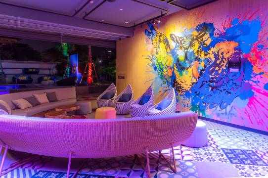 这个酒店很有夜店风(很像低配版的W Hotel😂😂😂), 适合年轻人,泳池氛围很好,住客在这里也有比较舒服的办公区域。周围的酒店都是1000+人民币,所以这家就更有性价比了,门口有按摩店,200🐷,250🐷/小时,也有7-11便利店