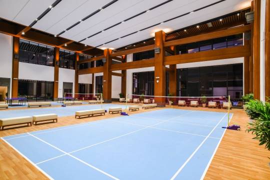 酒店由5栋主体大楼及各式主题房、民宿房间组成,可轻松满足不同会务需要的会议室4间,包括中餐、西餐、自助餐等不同风格的美食餐位约650余个,另外酒店康体中心还配备了乒乓球室、羽毛球馆、桌球室、室内泳池、健身房等多项休闲娱乐设施,成为国内外商务、旅游、度假客人到婺源的不二选择。