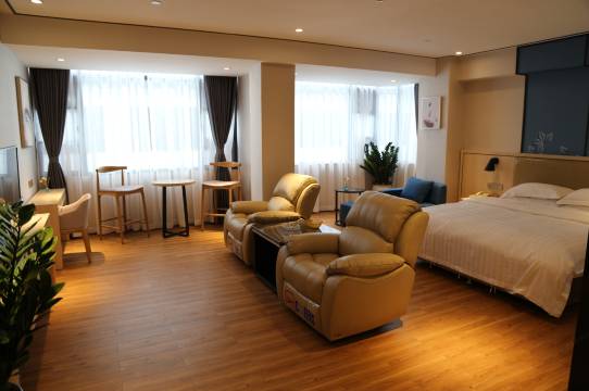 房间空间大,层高高,通风采光好!床品新,非常卫生干净无异味,卫生间干湿及马桶三分离,性价比很高,非常满意!
