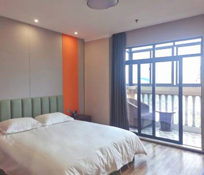 房间挺大的,对面就是一条小河,边上是一座桥,夜晚亮灯还挺好看,停车便利、离周边游玩的景点都不远、非常方便