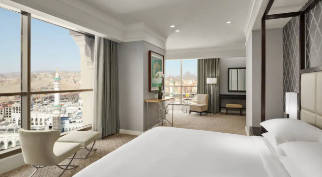 我在Jabal Omar凯悦酒店(麦加)的住宿体验真的非常棒!服务很出色,前台员工非常专业且热情好客,而且客房服务也快速高效。酒店位置绝佳,步行一小段路就能到达禁寺,这让我们的副朝(Umrah)非常方便。我一定会再来的,并且强烈推荐这家酒店给所有到访麦加的人。