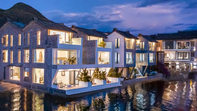 酒店客房择岸而居,间间近海,白族民居的硬朗外表之下里面是另一番天地,室内软装由独立设计师混合多种元素,全定制精心设计而成。