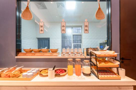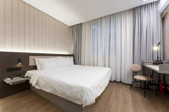 出门考试 就订华住会的酒店 有保障 晚上很安静 早上有早餐 还有延迟退房 房间里该有的东西都有 卫生也很好 住的很满意