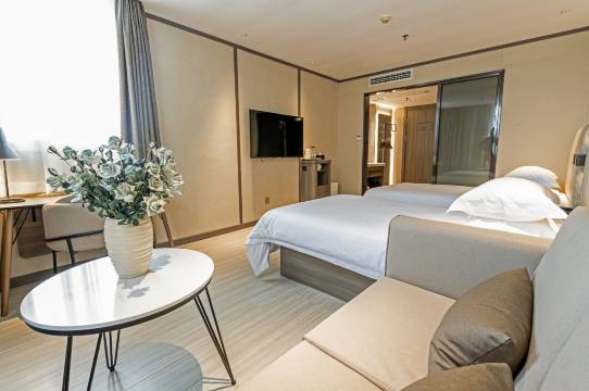 这次入住体验真的超棒!房间干净整洁,床单被套都没有异味,床软硬适中,躺上去特别舒服,一觉睡到天亮。卫生间干湿分离,热水来得快,洗澡超畅快。前台服务态度特别好,有问题马上帮忙解决,还热心推荐了周边好吃的馆子。早餐种类丰富,包子、粥、小菜都有,味道家常又可口。位置也很方便,离高铁站和商场都不远。楼下就有超市,水果店,一个红绿灯就能到万达!下次来这边,肯定还选这家!