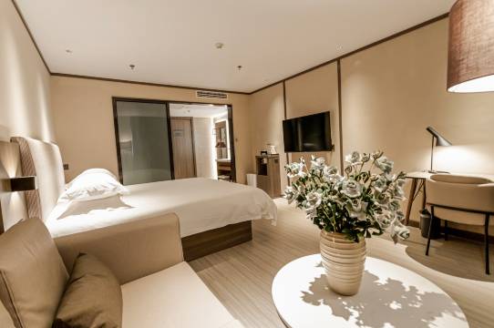 这家酒店真的挺不错的!一进门就能感受到干净整洁的环境,前台工作人员态度特别好,办理入住的时候特别有耐心,还细心地给我介绍了周边的美食和交通情况。房间里的设施也很让我惊喜,空气净化机,智能马桶!加湿器!床睡起来很舒服,被子和枕头也都干干净净的。隔音效果也挺好的,晚上睡觉的时候一点都不吵。
