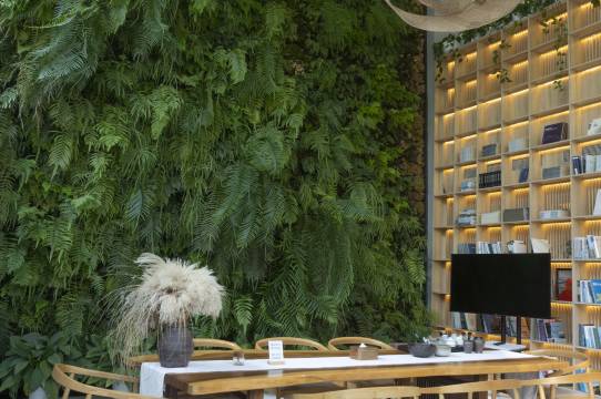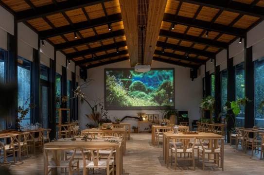 酒店客房布局围绕景观庭院、景观床榻、景观浴缸,构成一幅山水画卷;同时,配套特色餐饮、国际论坛会议厅、望山书馆、茶饮空间及竹林平台等,可承办和组织各种高端论坛、文化交流沙龙或主题活动。为望山学院学术交流主要举办地。