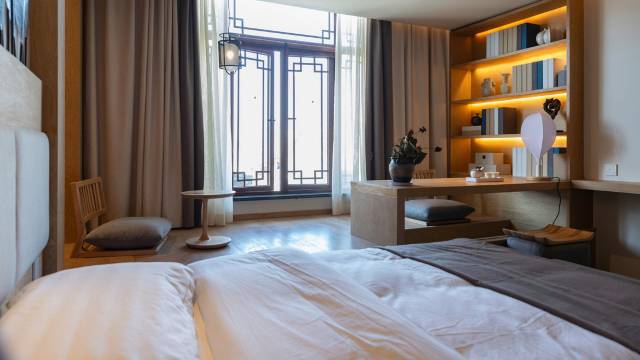 驻马店琢舍酒店民宿是集旅业、马文化为一体的驻马店酒店,酒店位于驻马店市驿城区香山街道李庄路皇家驿站景区内,皇家驿站项目坐落于物华天宝,钟灵毓秀的驻马店市,总占地面积约3300亩,项目以“驿站、皇家、古镇”为主题,构筑的“驿站文化古镇”,致力打造“驻马店城市会客厅”、“豫南旅游集散地”、“中国驿站文化体验地”。琢舍酒店占地面积1674㎡,楼高14米,与驿马广场、马王阁、古戏台、驿马群雕毗邻,烧烤一条街、东南亚风情街、皇家驿站大舞台仅需三分钟,距国家4A景区老乐山也仅需半个小时,是您旅游观光的梦幻天堂。驻马店琢舍酒店采用民宿装修风格,将民宿、马文化与现代完美结合,形成特色马文化的建筑特色。酒店功能完善,设有包括观景复式房、观景大床房、豪华标准房、特色大床房等各色客房28间,另有酒店独立的大型停车场,为宾客的出行提供了更多的便利。