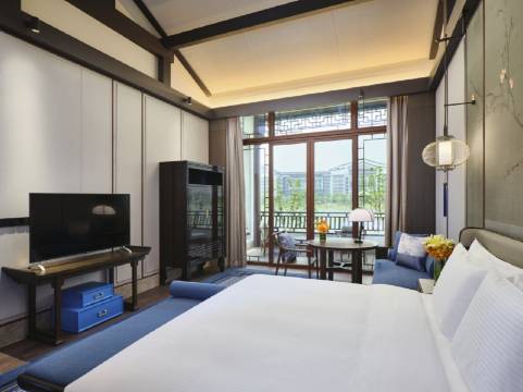 独立的宴会中心,总建筑面积超10,000㎡:其中2,000㎡无柱大宴会厅,灯下挑高达9.1米可满足100桌宾客同时就餐;11间设施齐全的多功能会议室搭配专业创新的会议团队,带给您别具一格的会议体验。江南灵秀的风情和浓郁的人文历史共同孕育而生。诠释了“禅心水境”的江南诗性文化。1,000㎡临湖草坪可举办草坪婚礼,新人将在这迷人浪漫的氛围中印刻下难忘回忆。