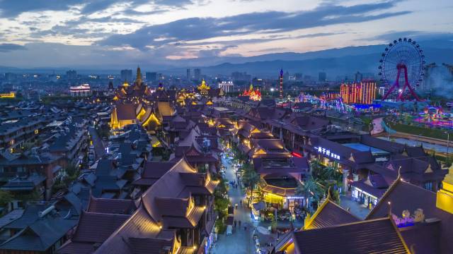 酒店有专车免费接送机,大概十几分钟路程,很惊喜的一点是,在酒店就可以看到远处山上的勐焕大金塔和银塔,夜景很美。