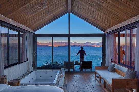 慢屋·大理揽清设计师酒店坐落于大理古城与下关之间的葭蓬村,距离心邸咖啡步行约15分钟。酒店毗邻洱海生态廊道,坐拥广阔湿地景观,享有环海西路上最美的一段自然风光。四季更迭,洱海展现出丰富而多变的美,在这里,生态与建筑和谐相融。 酒店秉承传统民居精髓,以设计传递温暖,与常见“冷淡风”设计酒店不同,慢屋始终注重营造一种可亲近的诗意生活。清晨,一缕阳光悄然漫入房间,不必急于起身,躺在床上即可眺望洱海日出,波光潋滟、天色渐明,是一天最美的开场。 愿意动身之时,不妨踏上生态廊道慢跑或散步,尽情呼吸清新空气,感受湿地苏醒的生机。运动归来,冲一个热水澡,于下沉书屋选一本杂志,坐在绿意盎然的庭院里边读边用早餐——本地厨娘亲手准备的精致餐点,为您开启惬意的一天。 您可慵懒于百年古茶树下发呆晒太阳,也可骑上酒店免费提供的自行车,穿梭于周边湿地、村落与田园之间,感受大理最本真的自然与人文风貌。 入夜前,别忘了在客房露台体验星空泡泡浴,让身心在温热水波与苍洱星空之间彻底放松,为美好的一天写下温柔句点。 酒店拥有十余间特色客房,大堂茶室、火塘餐厅、下沉书屋等共享空间适合放松与小聚,自助洗衣房也为长途旅人提供便利。此外,慢屋品牌在洱海东岸还设有可饱览苍洱全景的「慢屋·极目海景度假酒店」,诚邀您继续探索。