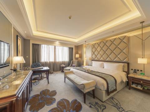 酒店80%地面区域采用青白玉铺筑而成,酒店整体由四栋华丽欧式风格单体建筑围绕喷泉中庭形成一个多功能、舒适度假兼商务的高端体系,是集豪华客房、商务会议、宴会、茶艺棋牌、中西式餐饮、康体娱乐中心为一体的酒店。其中会议室、客房、康体娱乐中心内设美轮美奂对接国际水平,满足高端商务办公需求,也是您在一天的辛苦工作或商务旅行后缓解疲劳的理想归途。