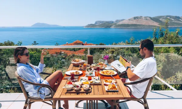 这家精品酒店很漂亮,房间宽敞明亮,装饰典雅。土耳其自助早餐非常美味,在一个漂亮的空调空间享用,还能俯瞰风景优美的泳池。酒店有两个大泳池和一个小型按摩浴缸池,都能看到大海和希腊的卡斯特洛里佐岛。有一条小径通往海边,你可以从岩石上跳入清澈见底的海水,也可以躺在日光浴椅上放松。但要注意:走回来的路很陡峭,对于体力较差的客人来说可能会有点挑战,尤其是在炎热的天气里。