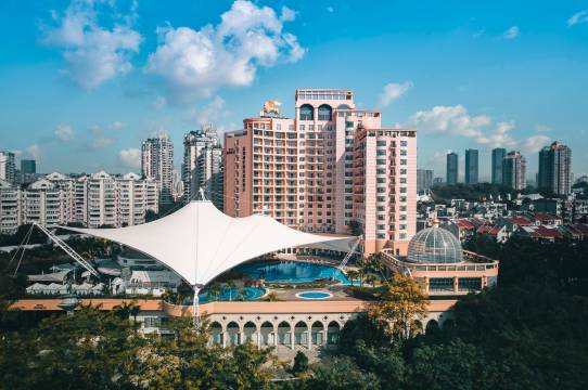 酒店坐落于南山区的华侨城中心区,交通便利,毗邻欢乐谷、世界之窗及益田假日广场,坐拥红树林湿地和深圳湾畔的旖旎海滨风光通。摩登客房及套房的设计中融入了本地邻间文化艺术,糅合斑斓色彩和建筑剪影墙纸等威尼斯风情,令人沉浸其中。大部分客房带有开阔阳台,可举目眺望城市景观,也可饱览世界之窗的独特风景线与盛大烟花秀。 四大主题餐厅延续“戏梦侨城“构想,探索艺术化餐饮体验。各餐厅相互连通又各有天地,室内外花卉绿植簇拥,生机盎然,自然气息流淌,伴您漫游于侨城美筵间。