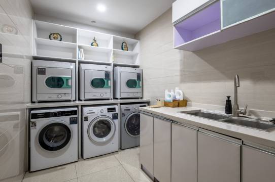缺点:洗衣机真的需要更新了,不能防串色也不能自动添加洗衣液,只有基础的洗衣功能,很久没有在酒店洗衣房看见这么古早的洗衣机了;洗衣服务也不是很完善,洗衣房里没有工作人员随时提供服务,全靠住店客人自助洗衣,研究了好一会洗衣机怎么用,打电话询问前台才确定能将洗好的衣服送到房间。