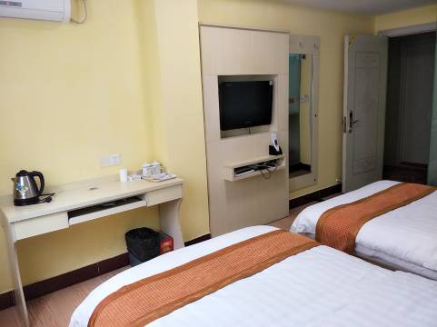 宾馆客房干净整洁,设有24小时热水、电热水壶、独立淋浴间、空调、吹风机等,服务周到。