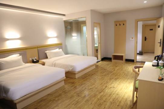 地理位置很好,交通方便,离高速路出口几分钟车程,宾馆房型还可以,环境不错,清洁卫生还可以,门口就是美食一条街,相当方便。