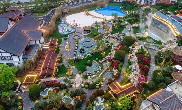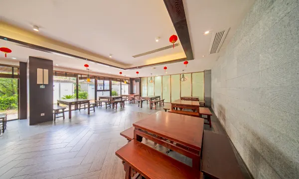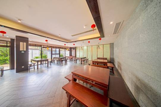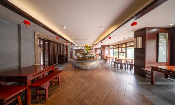 度假村包含温泉酒店和民宿客栈两部分。民宿客栈由3栋互相联通又相互独立的江西“样式雷”建筑构成。巧妙地贯穿黔南苗族、土家族的民族文化元素,奢华中彰显质朴,极具地域文化风尚。民宿客栈共拥有客房105间;拥有能够同时容纳52人就餐的自助餐厅及5间雍容气派的中餐包房;