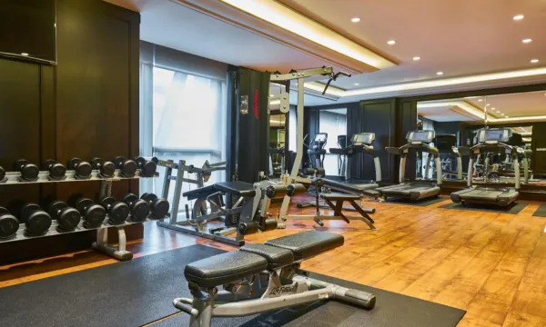 健身房比较小,设施不算太多,各类型的也都有;健身房的窗户外面还可以看到广东路的街景。游泳池只有1.2米深,不太适合儿童。