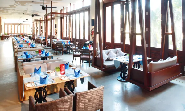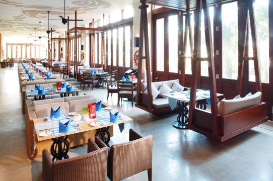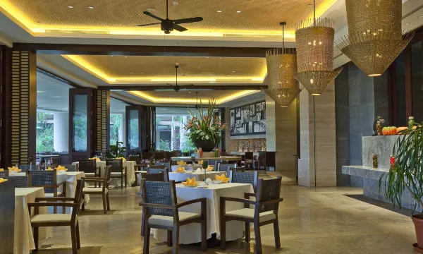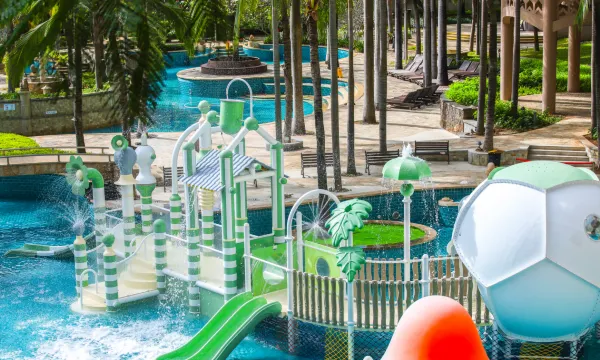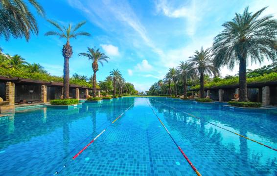 酒店坐落于“椰梦长廊”中心地段,海阔天碧,坐拥10万平方米宁静私密的热带园林,及4,500平方米极具规模又不失趣味的泳池。酒店拥有各具特色的客房,餐厅、酒吧、康乐水疗、儿童乐园等设施一应俱全,打造度假新体验。2,700平方米的宴会厅及会议室配备现代化会议设施,满足各类会议及聚会需求。