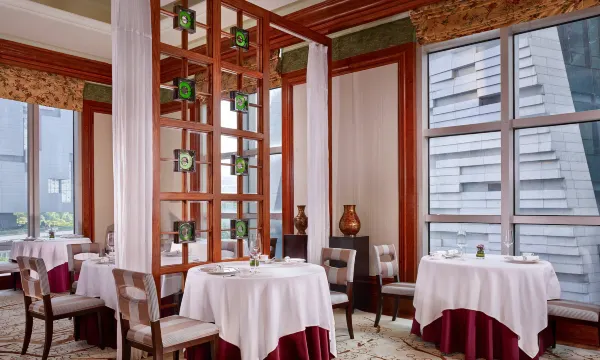 酒店拥有以米其林一星餐厅丽轩为代表的5间特色餐厅及酒吧,既承传了“食在广州”的饮食精髓,又紧贴世界美食潮流:尊贵粤式餐厅丽轩,国际美食舞台FOODS,时尚现代的意大利餐厅意轩,欧式大堂吧珍珠酒廊,英式威士忌雪茄吧邱吉尔吧。