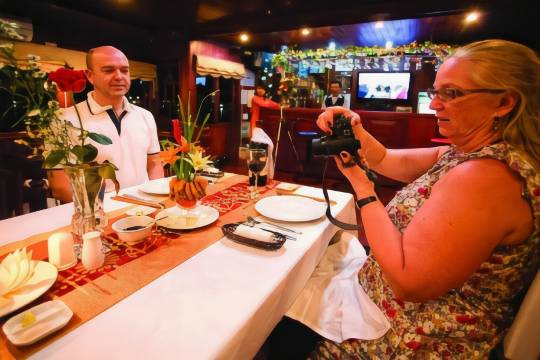 您可以到餐厅享用一顿美餐,也可以待在房间里,享受游轮的客房送餐服务。您可以到酒吧/酒廊,点一杯喜欢的饮品,畅饮一番。