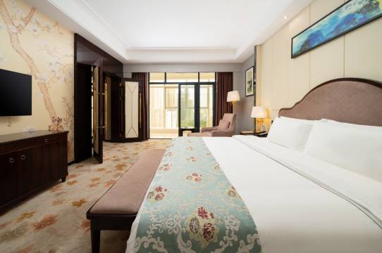 酒店坐落于贵港生活、文化、商业、政治中心,环境优美,东毗邻市图书馆,南靠市政府、新世纪广场,北瞰市民族公园;地理位置优越,交通便利,酒店建筑面积30000多平方米、层高17层,设计萃取现代简欧建筑精华,融入华夏文明精髓,高雅时尚却不失简约内敛。酒店精心打造两百余间客房,房内宽敞明亮、舒适安全,配有保险柜、电冰箱、浴缸及现代技术全电子触屏等硬件设施,无线网络全程覆盖。酒店拥有可容纳上千人的宴会厅和不同规模的多功能厅,设备齐全,配套有高清晰媒体投影仪、LED屏及大型舞台等设施,适用于喜宴、寿宴、公司年会、产品发布会、公司培训会等大型活动;更配套有特色中、西餐厅、自助餐厅及精致茶餐厅,华美精致的用餐氛围,贴心周到的服务,为宾客打造美食体验;拥有高规格的健身中心、丰富的康体项目、户外网球场、大型超市以及大型停车场,满足宾客的多元化需求。