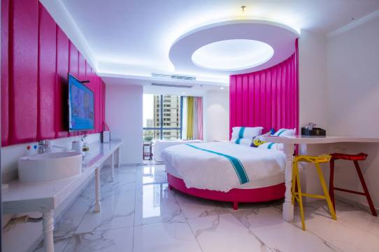 酒店是以现代时尚智能和浪漫想结合的装修风格,集城市浪漫舒适旅游为一体的多功能智能化酒店,自助洗衣机服务、停车场、前台贵重物品寄存服务。酒店有巨幕投影房、部分房间有浴缸、55寸液晶电视机、24小时冷热水、免费洗漱用品、吹风机、拖鞋、分体空调、不断电插座1个、自动感应灯、“小智管家”智能化入住。
