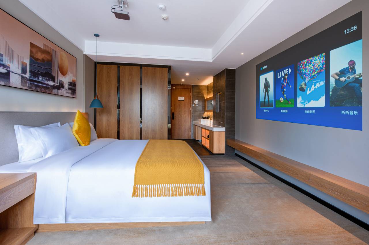 喜欢这家酒店的所有,前台小姐姐服务好,洒进窗户的阳光很美,全屋智能很方便,投影仪很清晰,酒店周边配套很齐全