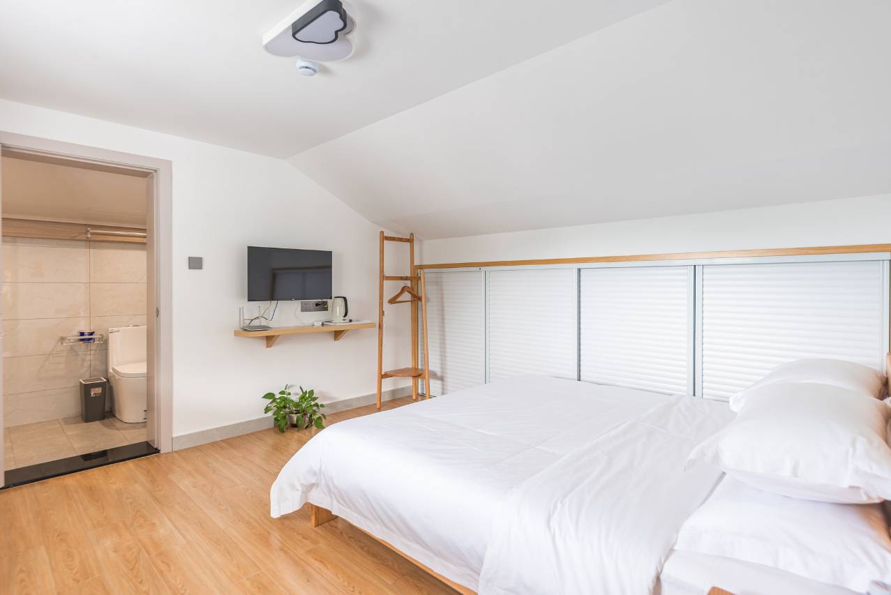 民宿总面积达700平米,整体设计简约又不失格调,宽敞舒适。民宿有4个双床房,4个家庭房,6个大床房,大床房可以加床。(最多可以有14个双床的房间)民宿有KTV、棋牌等配套娱乐设施,配有投影及小型会议室,适合公司团建,朋友轰趴。民宿周边有特色农家乐,可以品尝本地美味农家菜!