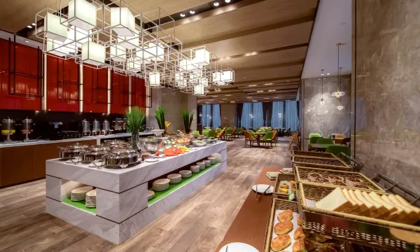 酒店环境好,地理位置优越,前台接待热情有礼貌,客房打扫及时,工作人员都很专业,非常满意的一次入住体验,床铺舒适用品贴心,服务细致用心,是出差和旅行的理想下榻之处。交通也很方便,距离高铁站10几分钟,停车场车位比较多,免费停车。前台服务贴心💞,房间落地大窗,早餐菜品味道好,种类多,惊喜满满✨。总的来说