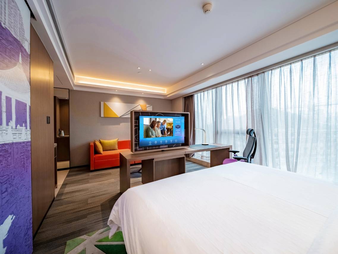 刚进大堂,感觉很宽敞明亮,有音乐声,还有淡淡的香味,氛围感很好,小妹妹的微笑也很治愈。前台工作人员态度很亲切,还贴心介绍了酒店设施,后山施工等,好感度up!