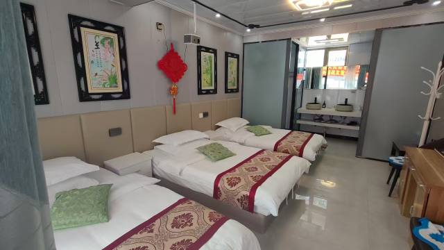一路游玩没能及时评价,小镇民宿房间干净整洁温馨,老板娘还特意给我们升级了房型,由于不认识路老板娘让他弟到路口去接我们,到了民宿还热情的给我们拿行李,离景区很近晚上休息很安静,老板一家更热情好客还请我们一起喝啤酒🍺,我们一大家子9个人订了三间房住的很踏实下次带朋友过来玩还住这儿,必须的点个赞👍👍
