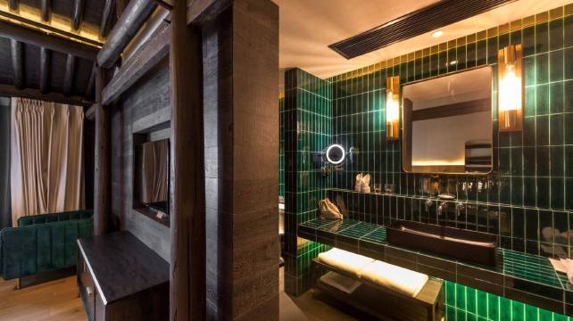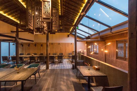 民宿座落于德清县新市古镇北街,位于千年古刹觉海禅寺旁,其名中“觉海”一词便由此而来,“域”则来自于“法妙於圣,化出域中”一句,其意当从觉海寺带佛心出来,域乃寺之扩张外延。