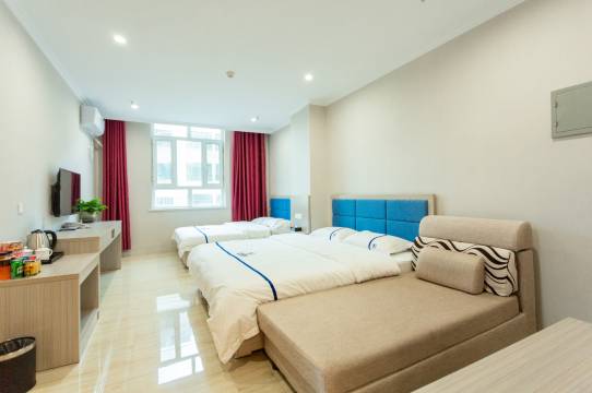 房间够大,四个人住很宽敞,楼下停车方便,服务态度热情周到,有服务意识👍 设施较齐全,略陈旧,不用取电卡也可以正常用电。