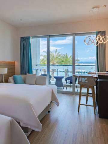 酒店位置好,全海景(外面是游艇码头),提供丰富的海上游乐项目,停车楼和主体连通非常方便。房间干净,房间陈设比较简洁,有点地中海度假村的感觉,最好把时间都花在海上沙滩上而不是呆在房间里。