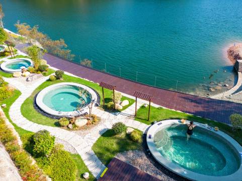 酒店很不错,三面环湖,有露天温泉池♨️下午4点开到晚上9点。泡的时候能远眺湖景,非常惬意。
