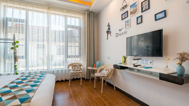 民宿拥有布置简约而不失奢华的客房,2019年新装修开业,每个房间都有卡通主题装饰,非常受小朋友欢迎,房内配有高速无线网、空调和液晶电视机,让您感受到更加贴心细致的入住体验。服务人员会提前为您准备好电热水壶和瓶装水以及茶具,以满足您的饮水需求。倘若您在忙碌的一天后想在自己的客房内放松,提供拖鞋、24小时热水和吹风机的客房浴室是不错的选择;民宿休闲区提供了各类设施,您可以在这里舒缓身心压力。