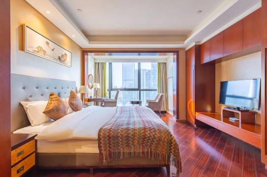 房间整洁宽敞明亮地点也不错,交通便利地铁就在楼下,金鹰商城和另一个景枫商城就在旁边