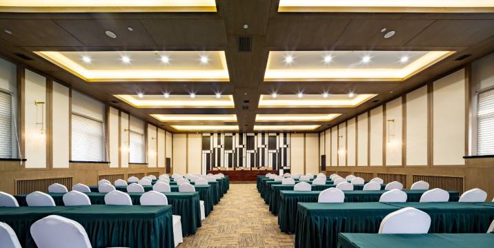 酒店总占地面积7000平米,总投资1800万元,装修独特、舒适豪华的酒店,集住宿、会议、餐厅于一体,设有大小会议室,拥有全套专业的会议设备,可同时接待150人以下会议。悦华·东方酒店恭候您的光临。