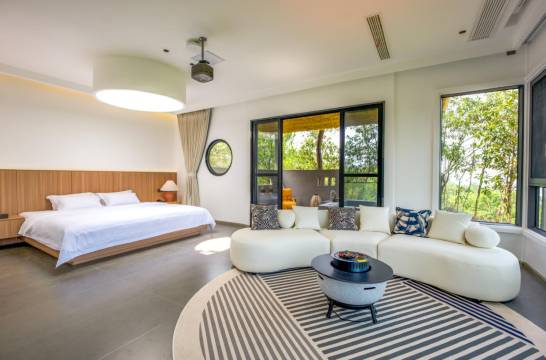 位置很好,就在乌尤寺码头旁边,酒店有电频车接送,很方便。最喜欢的是酒店的自然环境,负氧离子爆棚,空气清新,任何时候都可以沿着步道散步。房间散落在整个山间,和自然融为一体,环境优美。床品不错,拖鞋质量也很好。唯一不足的是去的那天有点阴雨绵绵,特别冷,亲子房两个空调30度都没什么用。还好两个床都有电热毯,不然真不知道晚上怎么熬。酒店服务也很好,打电话到前台随时都有电频车来接送。路面到房间有步道楼梯,有些位置比较高,如果有老人可能需要提前问问酒店房间位置。我家老人腿脚不太利索,准备天转暖了带他们来住两天,所以比较关注房间门口的楼梯高度。总的来说体验很好。