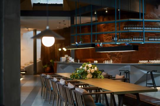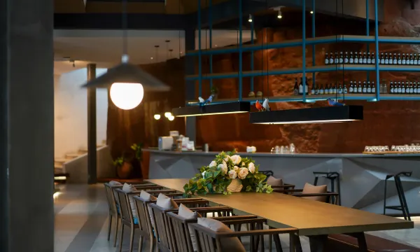 非常有特色的一家酒店,依山而建,入住后需要坐电瓶车到达房间所处的位置,然后坐电梯上到30几米的高处,通过悠长的小径再到自己的房间。我们这次定的是家庭套房,两间卧室和一个小客厅,住的非常舒适,两个孩子都觉得这个酒店很新奇。他的早餐是在大堂附近做一个斜拉式的电梯上去,装修也很有特色,还有咖啡馆面积很大,是在房间向另外一个方向走去,环境很好,适合于团建总之是一次非常独特的体验。