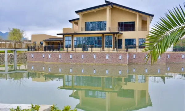 龙南老屋下酒店是一所高端精品酒店,总投资3个多亿元,占地面积97亩,绿化和自然水域面积占地超过50%。