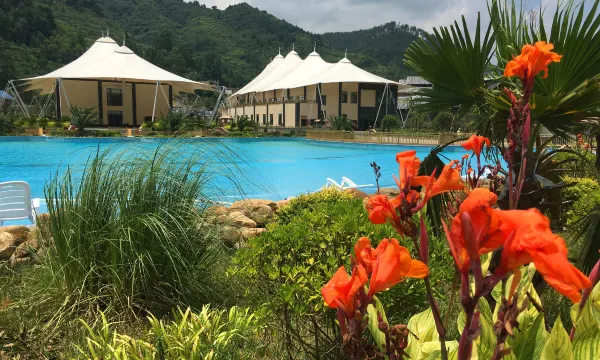 天然露天温泉、特色3000㎡温泉泳池、林间蒙古包温泉小厅、张拉膜帐篷客房简约大气、豪华室内泡池足不出户也可享受惬意温泉;