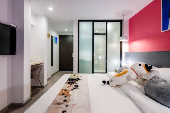 给朋友又订了一次房间感受很好进来就是猫猫的主题,小孩子很喜欢周围吃喝玩乐一应俱全,离地铁站也很近旁边就是武定门地铁站,停车也是免费的,感受很好下次还来住。