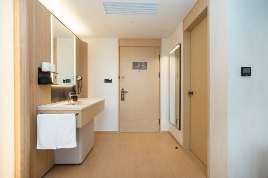 初次体验全新设计的全季,房间布局很新颖,床品也很舒服,房间较传统的全季也大出不少,条形桌适合亲子家庭休闲和学习。前台服务很好,孩子超出1.3米了,服务员也大大方方给了早餐券,而不是像之前那样要购买早餐。