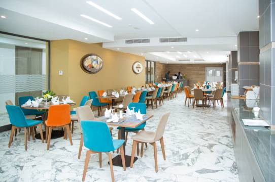 酒店设有 2 间餐厅,您可以选择一家简单吃一点,也可以待在房间里,享受部分时段客房送餐服务。忙碌了一天后,可以去酒吧/酒廊或池畔酒吧小酌一番,轻松一下。每天 07:00 至 11:00 提供收费的自助式早餐。