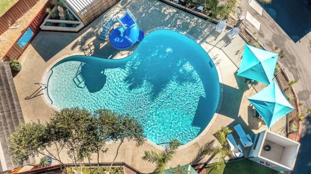 孩子们在泳池玩得很开心。