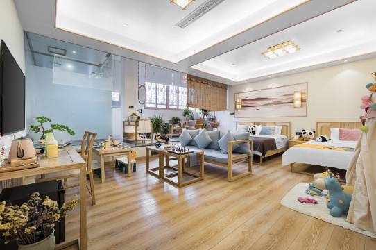 入住的森林氧吧房增加负氧离子,帮助睡眠非常棒,我们连住了三天,这里真的很适合长期居住,下次还来,楼上还有小兔子,非常可爱,大厅拍照很出片,有免费的汉服体验和书法体验,还有图书室,都江堰这段时间办灯会出门就可以游玩,楼下就是小吃街,旁边就是蓝眼泪,灯会也在旁边的路上,这个酒店在古城闹中取静,晚上特别安静,